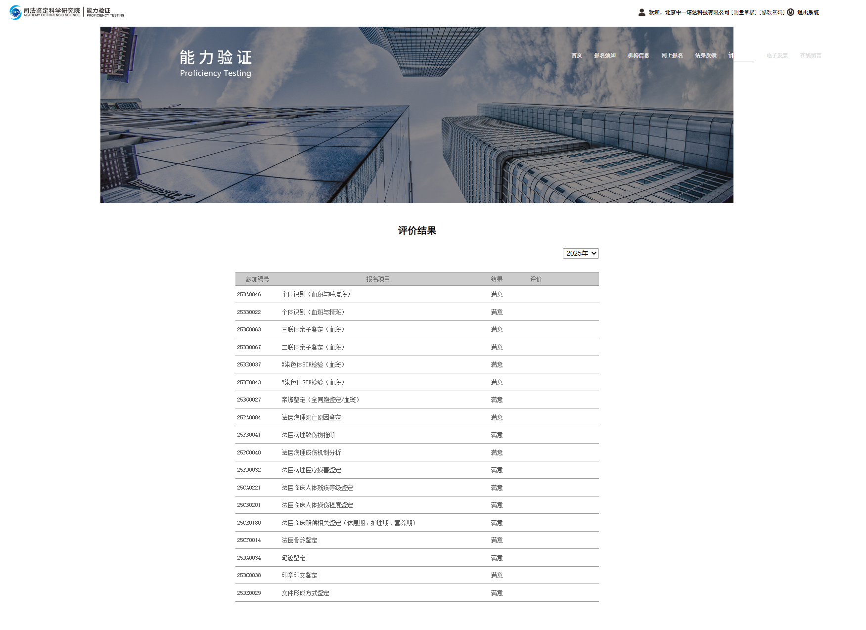 近日,司法鉴定科学研究院公布了2025年度司法鉴定能力验证结果。北京中一诺达科技有限公司司法鉴定中心(简称中一诺达)参加的法医临床鉴定、法医病理鉴定、法医物证鉴定和文书鉴定合计18个项目,全部以优异表现获得“满意”结果。